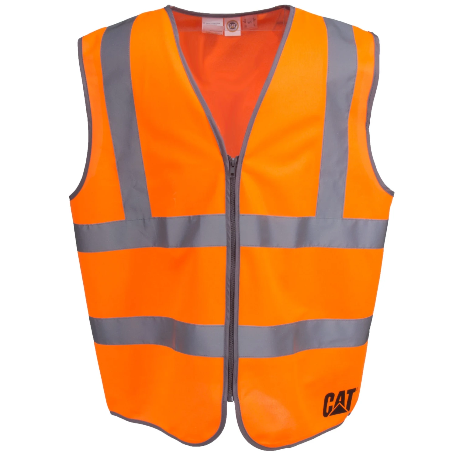 Safety while on the jobsite is no joke. If you need high visibility gear that will alert others to your presence, look no further than this ~CAT Apparel Men’s 1320025 607 Hi Vis Orange Zip Up Safety Vest.