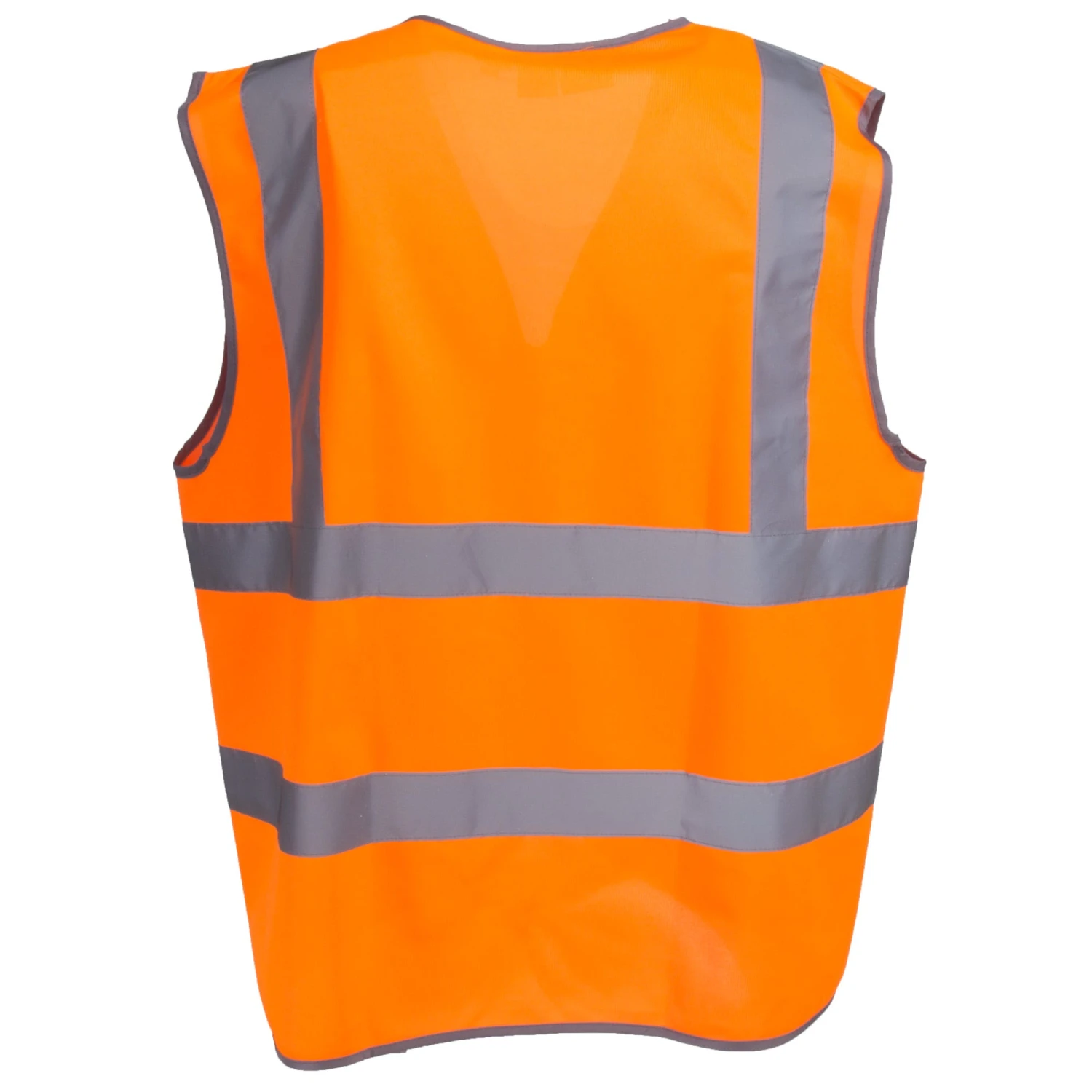 The most important feature of this men’s hi vis workwear is its ability to alert others to your presence, but it has a few other features as well. For starters, the orange vest is crafted from 3.5 ounces of 100 percent polyester tricot. Polyester is lightweight and breathable without sacrificing strength, so it’s a good choice for a vest. It also features front zip closure, a logo print on the lower left, and an open left chest for personalization.