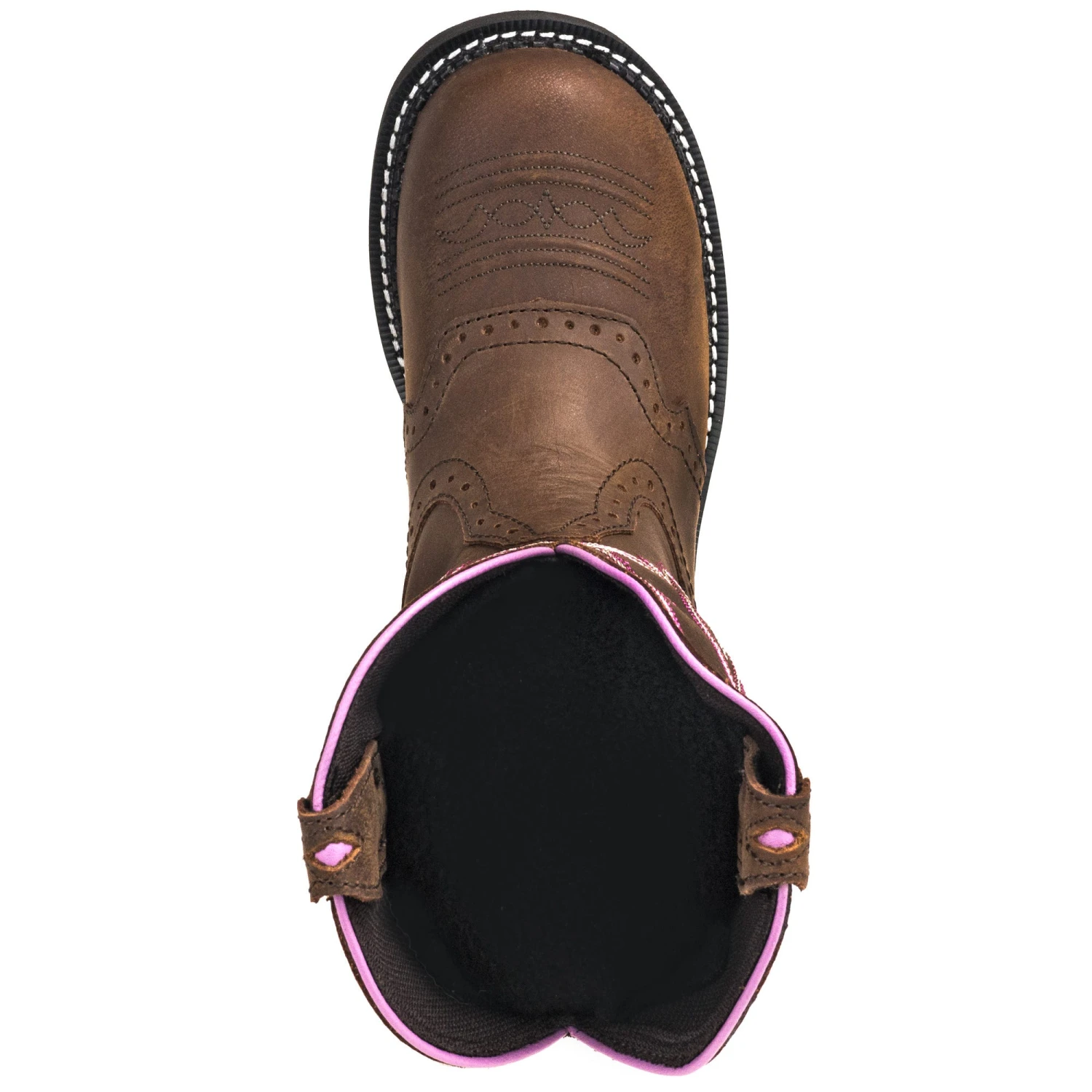 Vintage, brown, and pink…you really can’t go wrong. Add to it the brand’s reputation for comfort and the fun and feminine style of these Justin Gemma Women’s GY9903 Brown 8-Inch General Toe Cowboy Boots, and you’ll love the strength and comfort of these Justin boots. Order your pair today – right here at Working Person’s Store!