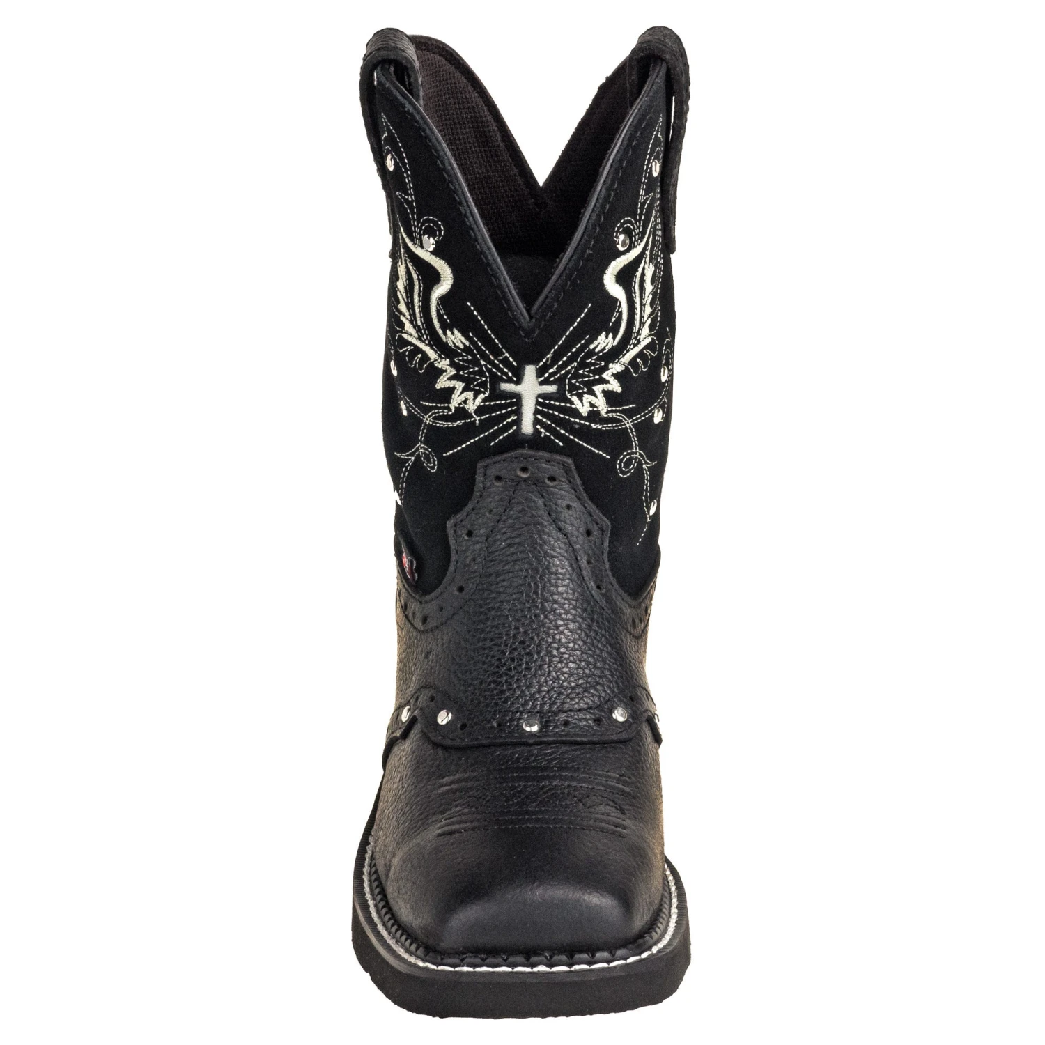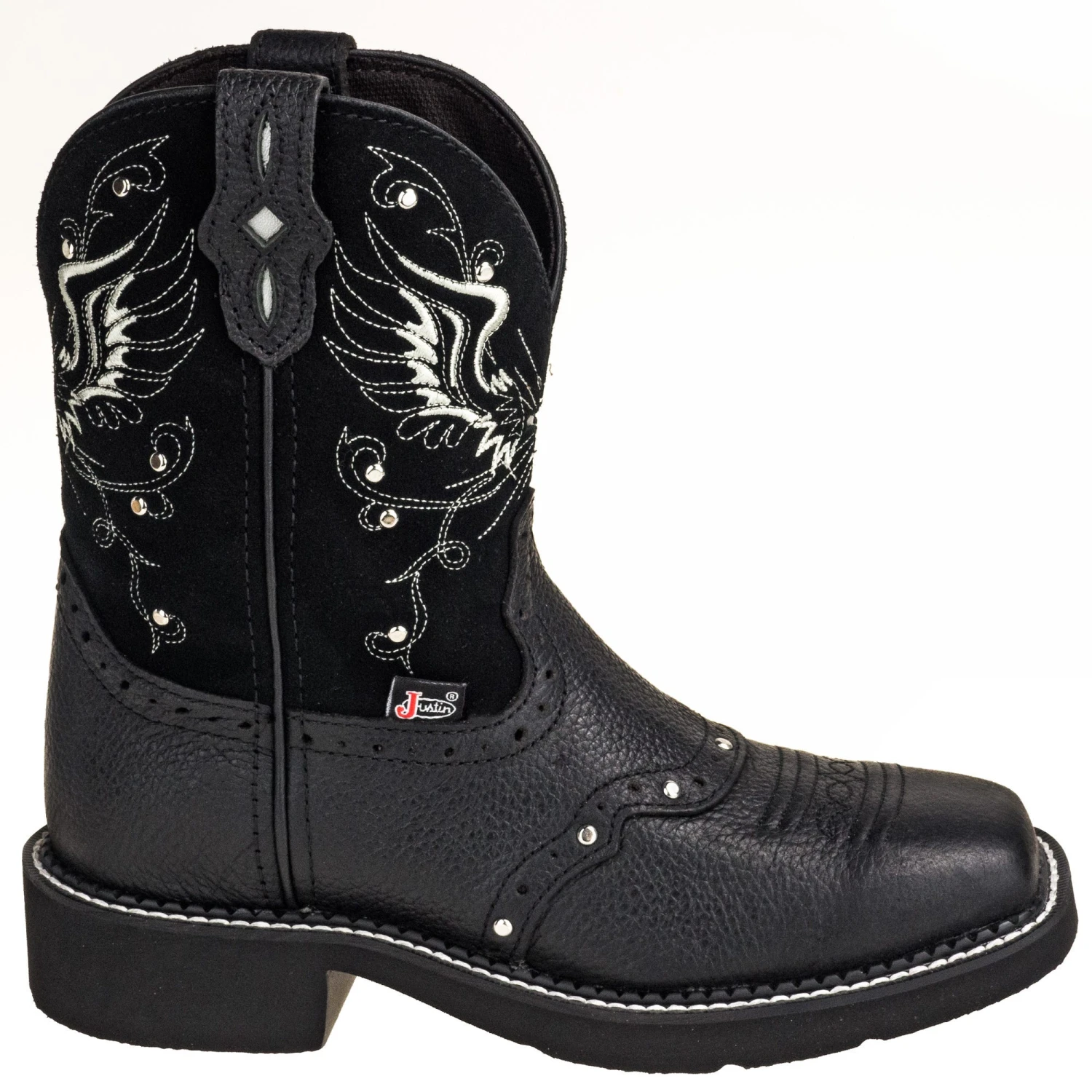 For a unique and classy look, these highly durable Justin Women’s GY9977 Mandra Black Rhinestone 8-Inch Cowboy Boots from Working Person’s Store, part of the Justin Boots Gypsy line, are made for fashion and fun, but also constructed sturdy enough to last. No matter what look or occasion you’re heading out for, you’ll enjoy the attention you get while turning heads in this unique decorative rhinestone cowgirl footwear.