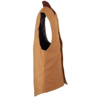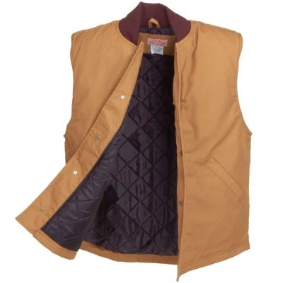 This handsome Red Kap VD22 BD Brown Duck Snap Front Vest looks great by itself for an insulating layer against winter’s cold, and snaps into the Red Kap JD24 BD Brown Duck Chore Coat With Quilted Lining for complete cold weather warmth. It always seems much colder and icier outside on the mornings that you have to go to work – doesn’t it? With this warm, cozy vest, the warming effects of your coffee won’t wear off the minute you walk outside.
