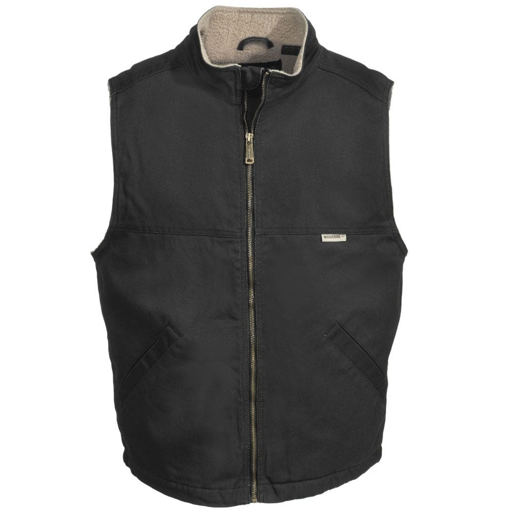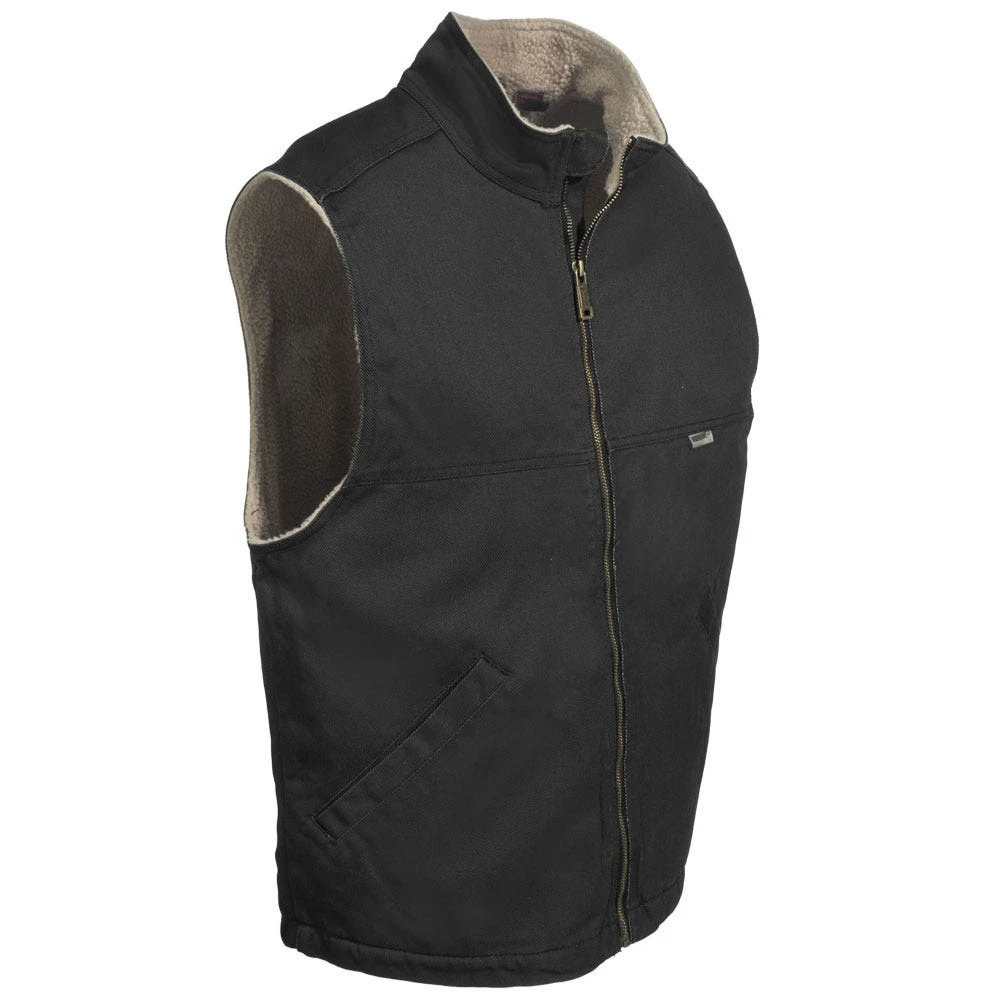 This black vest is made from 100% cotton twill. The resilient and soft material is characterized by diagonal lines on the face. Pigment printed and enzyme washed, the Wolverine outerwear is super soft and has a cool washed out look. Inside, 100% polyester Sherpa fleece offers durability and warmth.