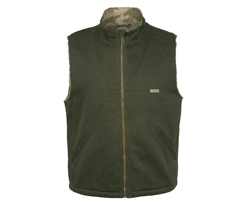 The 100% cotton twill in this Upland men’s vest is comfortable and durable, and the rugged twill is lined with a classic 100% polyester sherpa fleece for superior core warmth. Utilize the full zip that goes up through the collar for reliable coverage that blocks out cool air, while the extended back hem of the Olive green sherpa-lined outerwear makes sure you have ample coverage, too. The center front zipper closure has a metal logo zipper pull for resiliency.